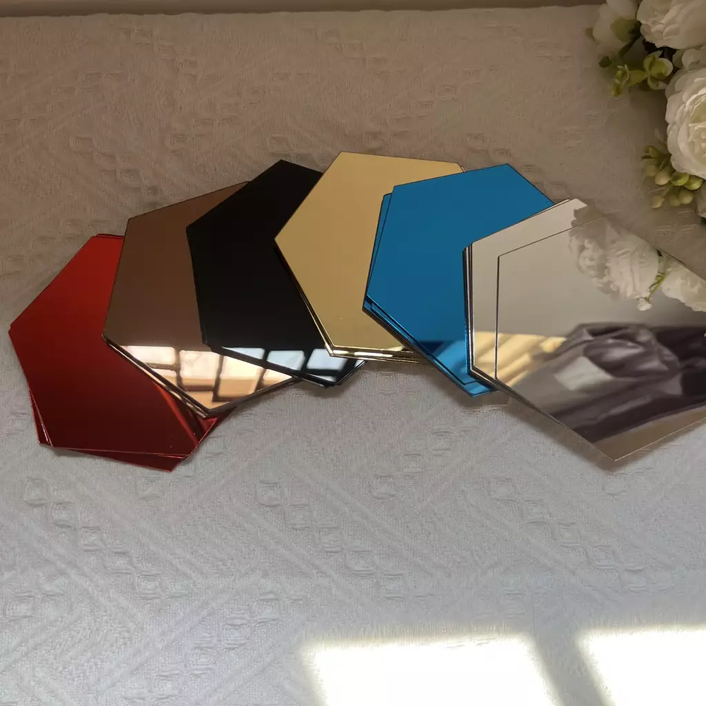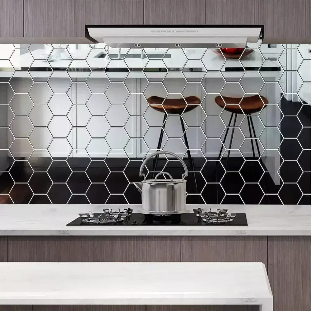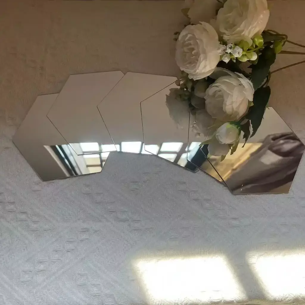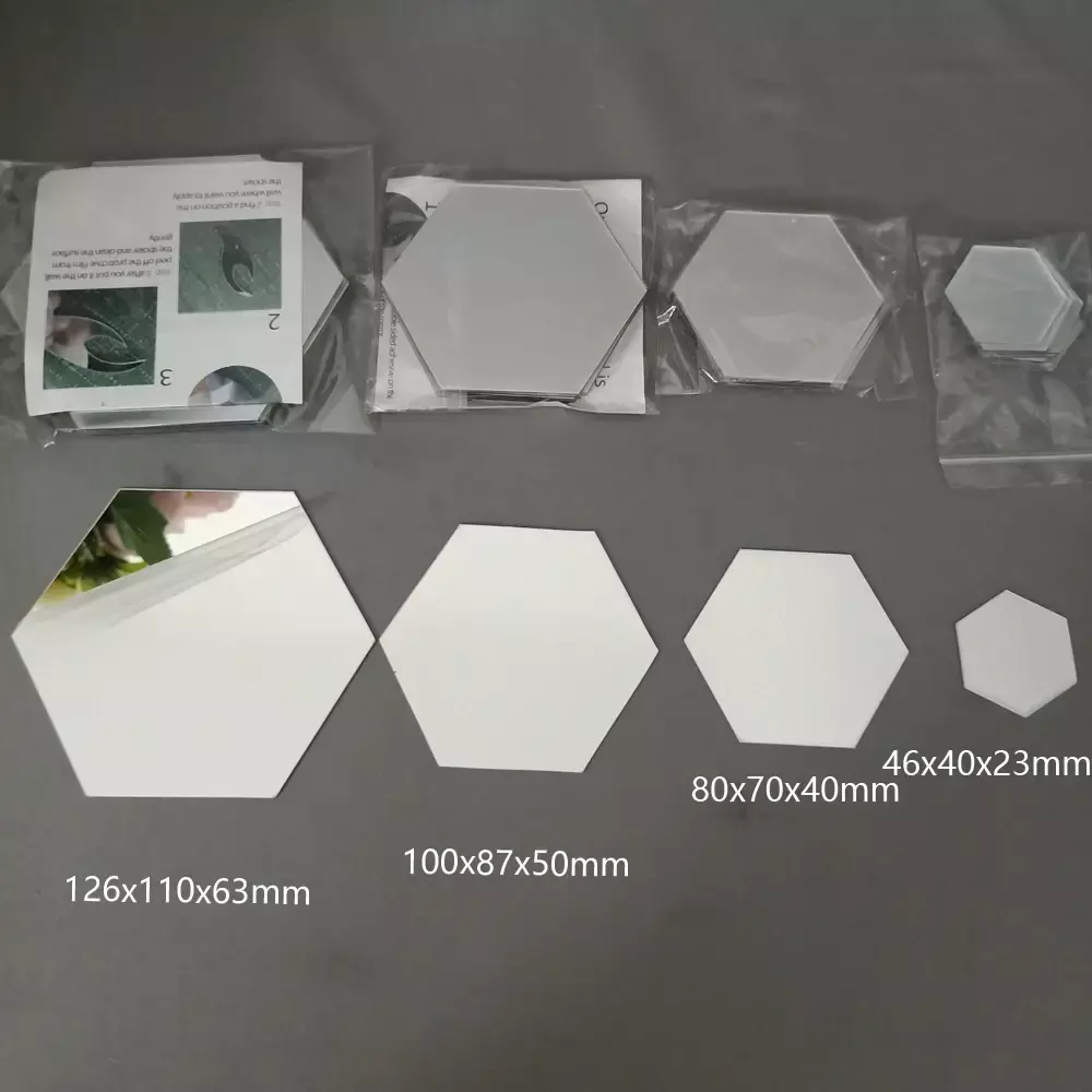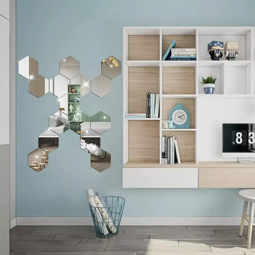 Material: Este decalque de parede com espelho de hexágonos é feito de acrílico, a superfície é reflexiva e a parte traseira tem cola em si.