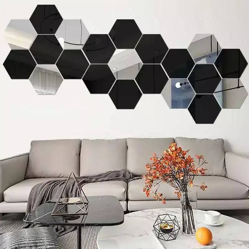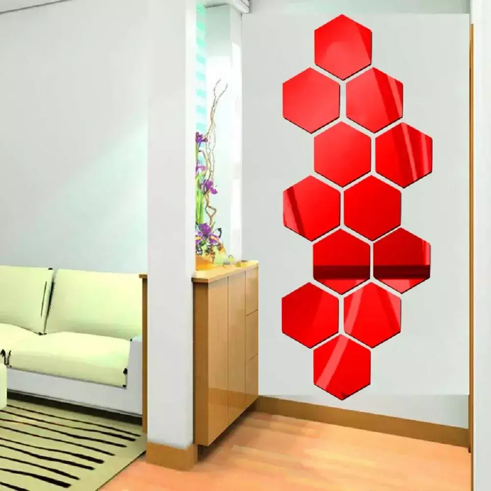 6/12 unidades * adesivo de espelho hexagonal 3D (não é um espelho, apenas um adesivo de parede de espelho)